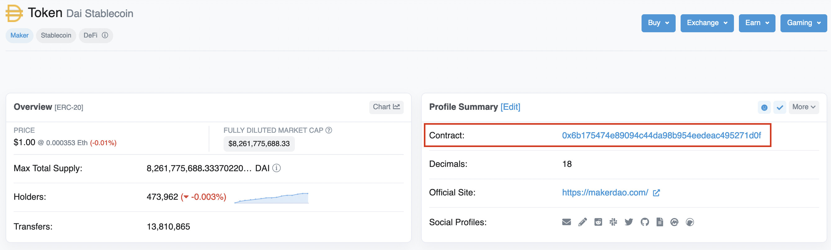For this tutorial, we’ll use the DAI token contract. However, you can choose to use any ERC-20 token address. Copy the address you wish to use, and save it somewhere as we will use this in our code later.