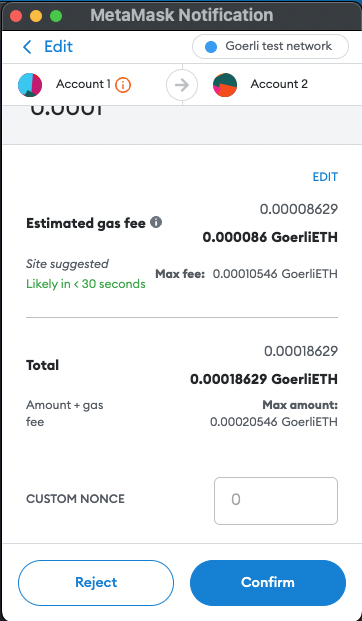 • Send a simple transaction. We’ll notice here the key difference when signing the transaction - while with the Web3Provider one could simply load the private key from Metamask, the InfuraProvider would need a wallet created locally with a stored private key. Therefore this method is only advised to be used within a backend service and not in a client side app.