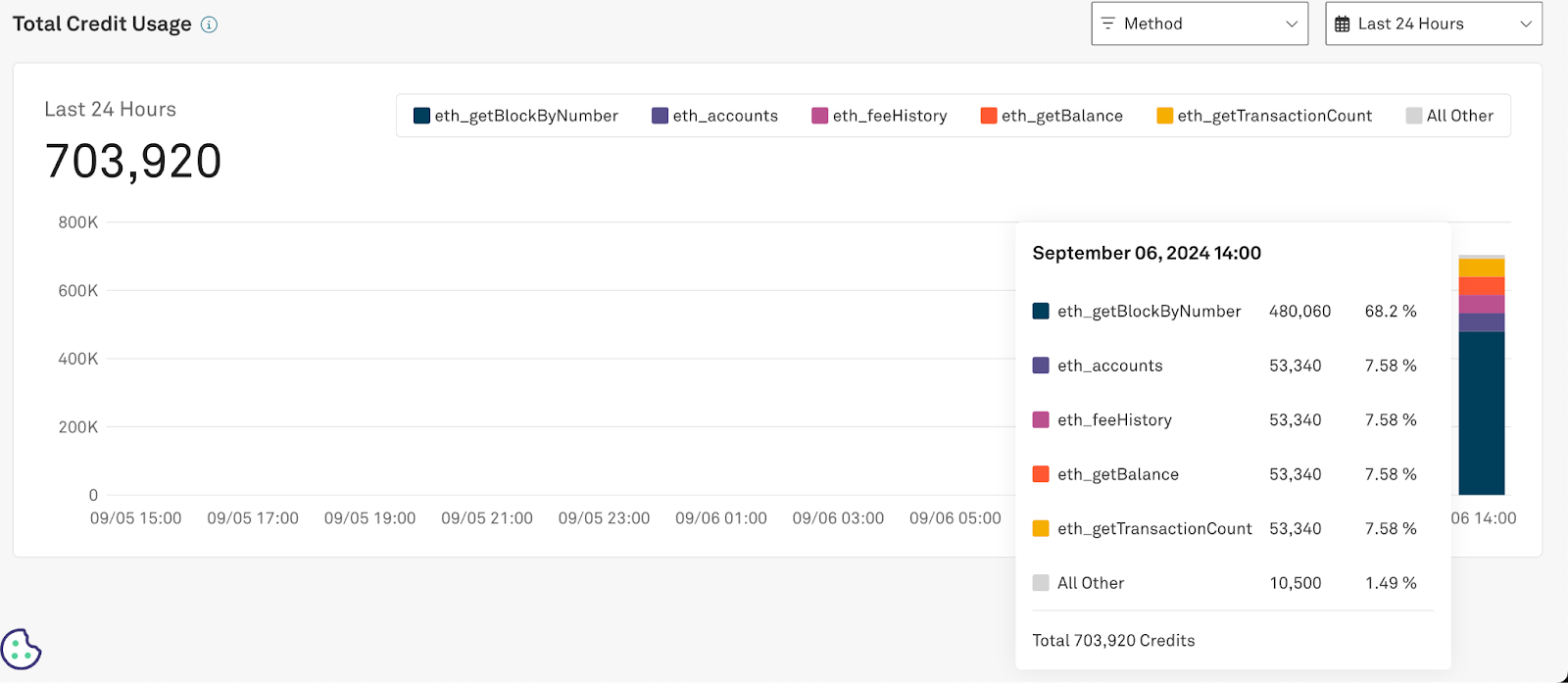 The Infura dashboard allows you to monitor and manage your credit usage. Learn more about Infura's new credit-based pricing model.